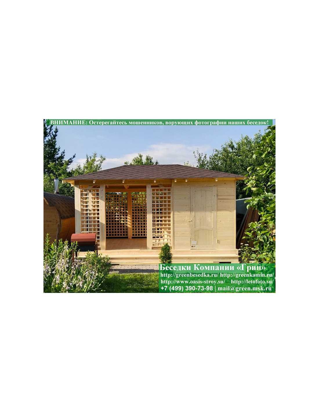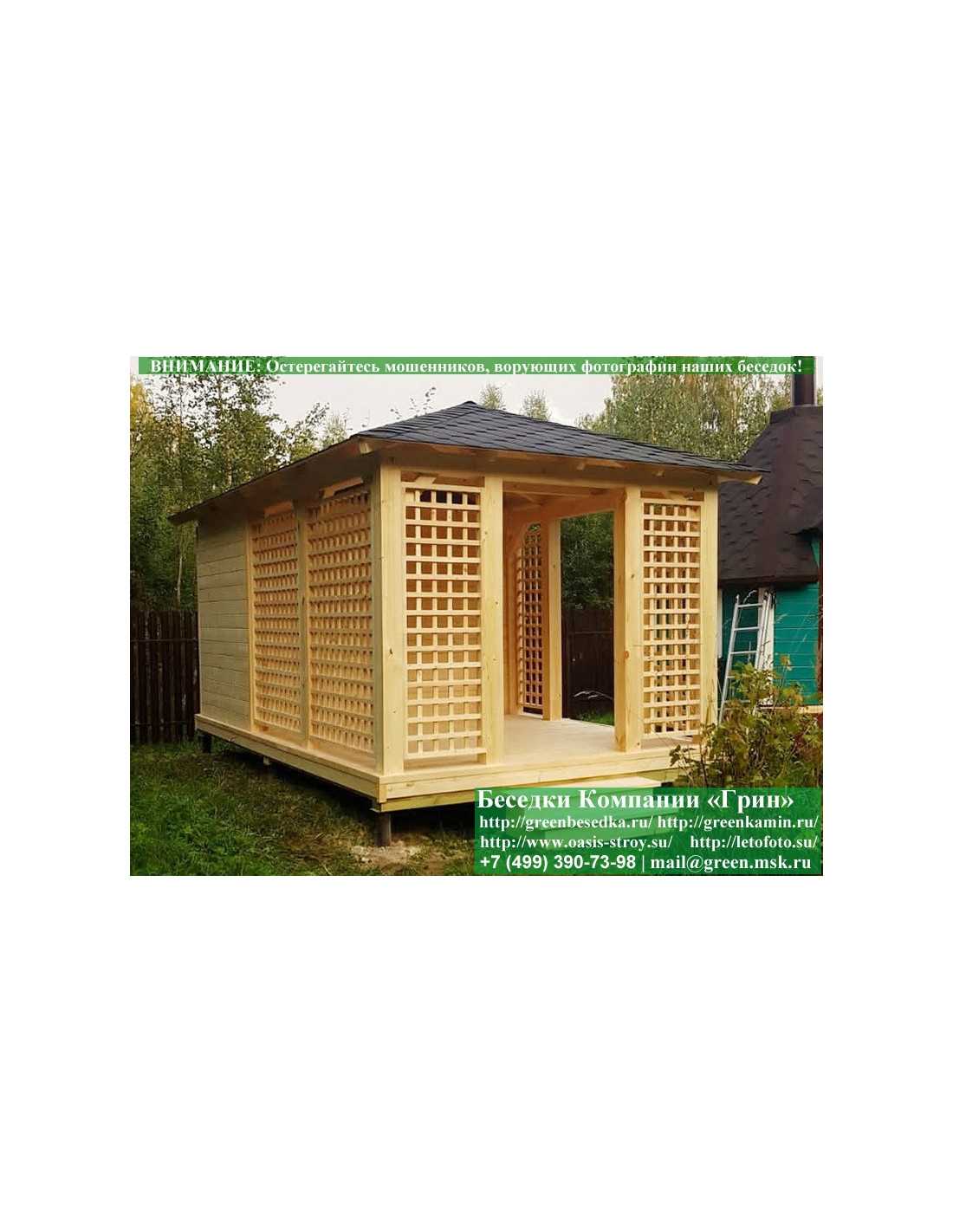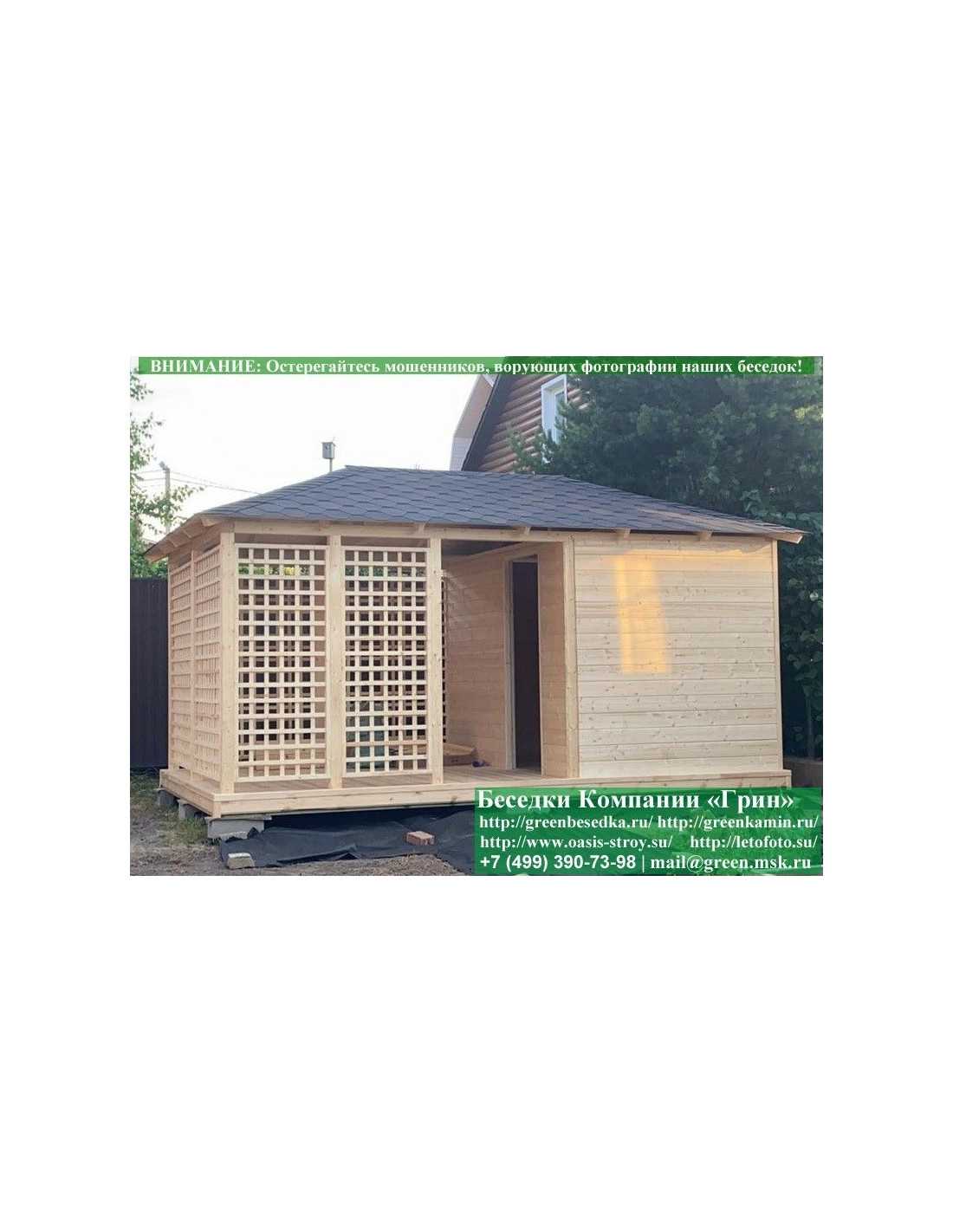 В стандартной поставке беседка идет с проемами под крышей, между беседкой и хозблоком и хозблоком и улицей. Стоимость работ зависит от размеров беседки. Данная цена указана за работу беседки размерами 3х5 метров.