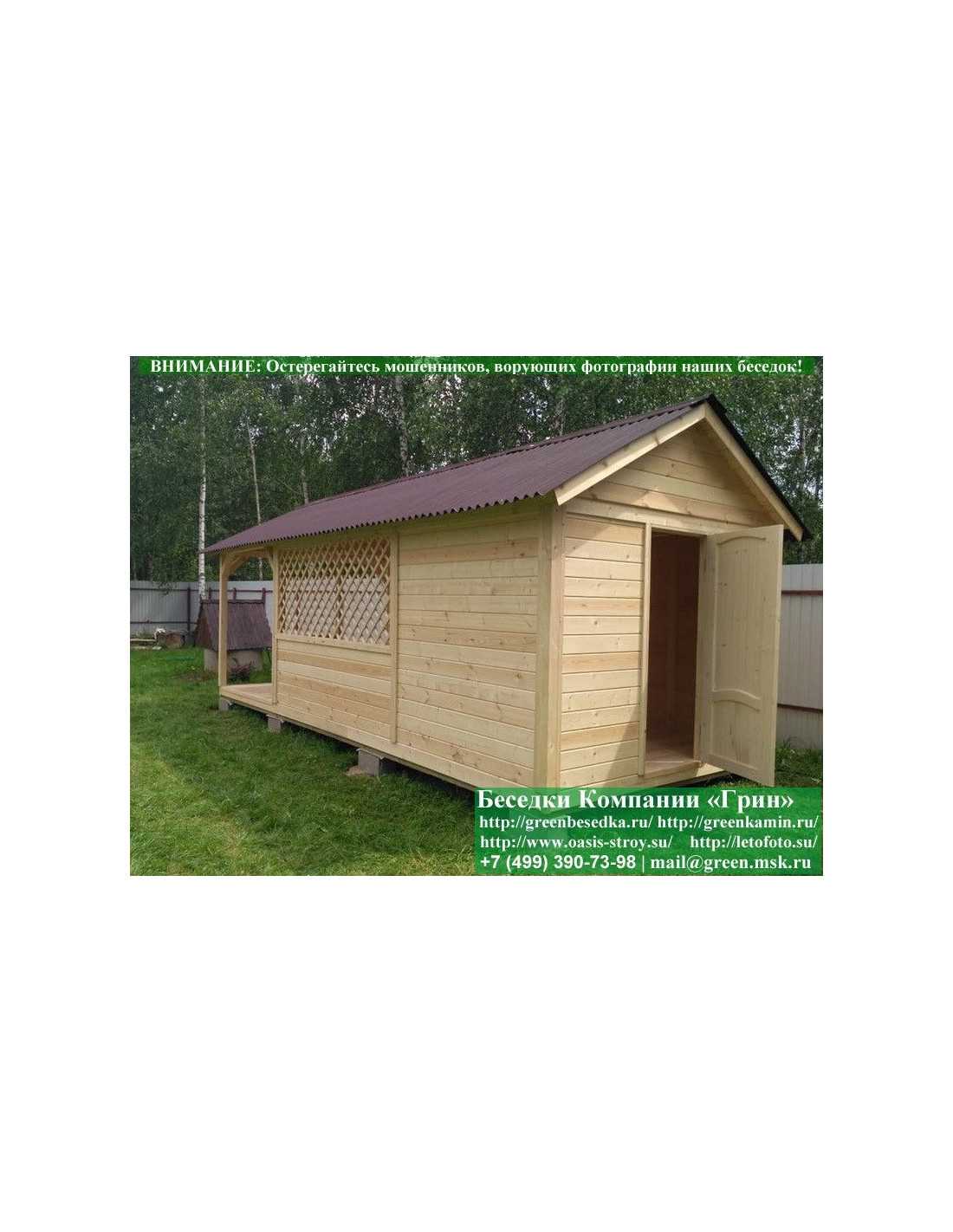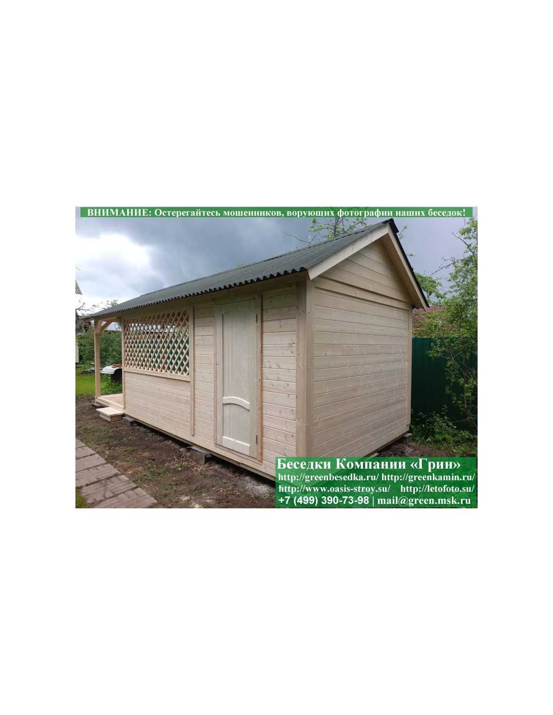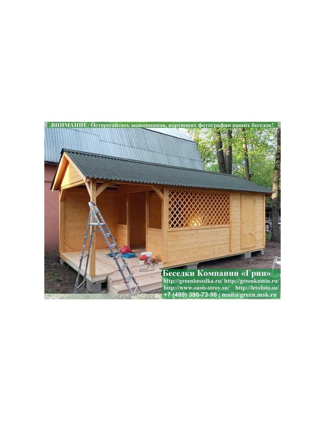В стандартной поставке в виде кровли на крышу беседок, бытовок, хозблоков 3х7 метров кладется ондулин (мягкий шифер). Вы можете дополнительно заменить его на более надежную металлочерепицу. Цена 30000 руб.