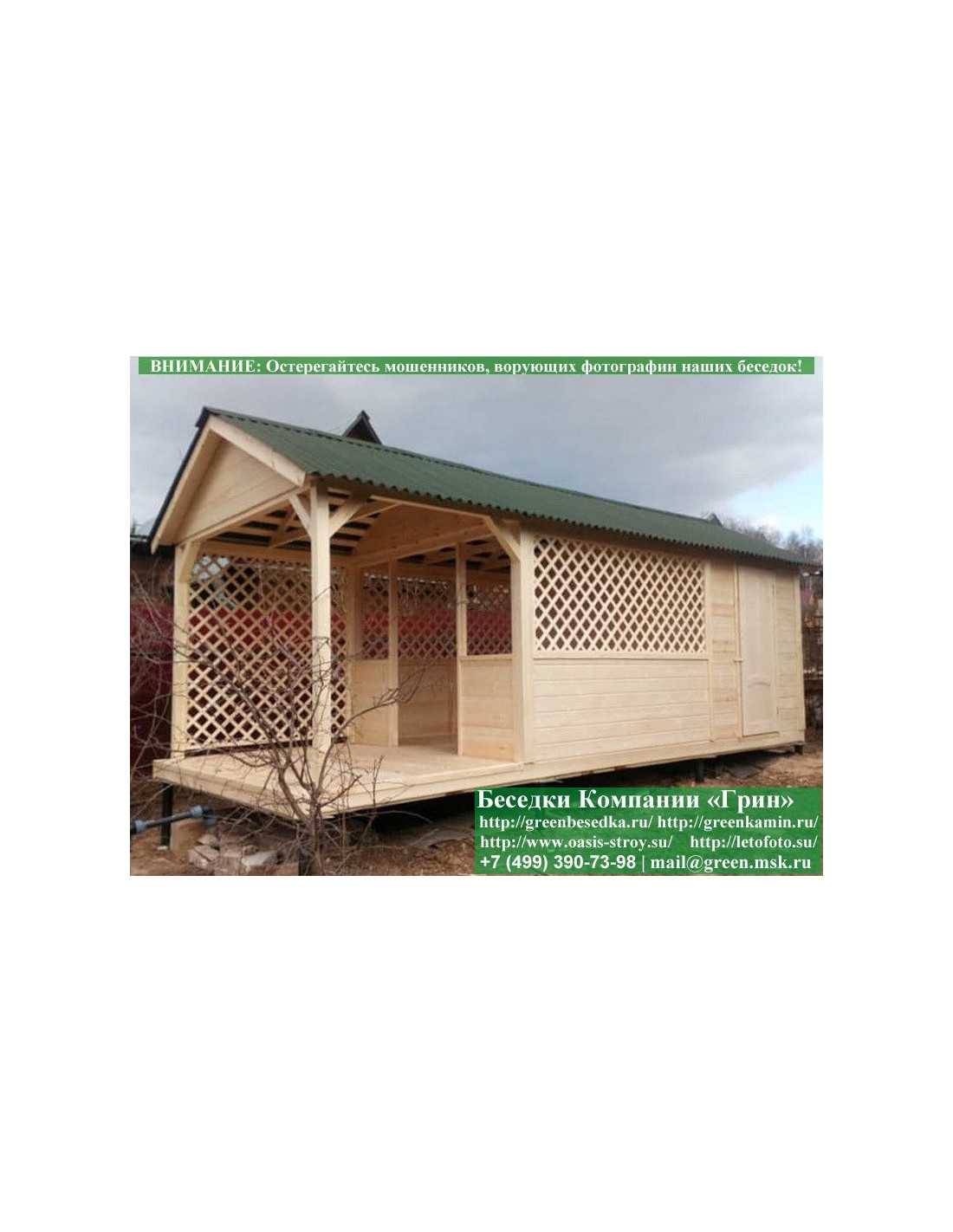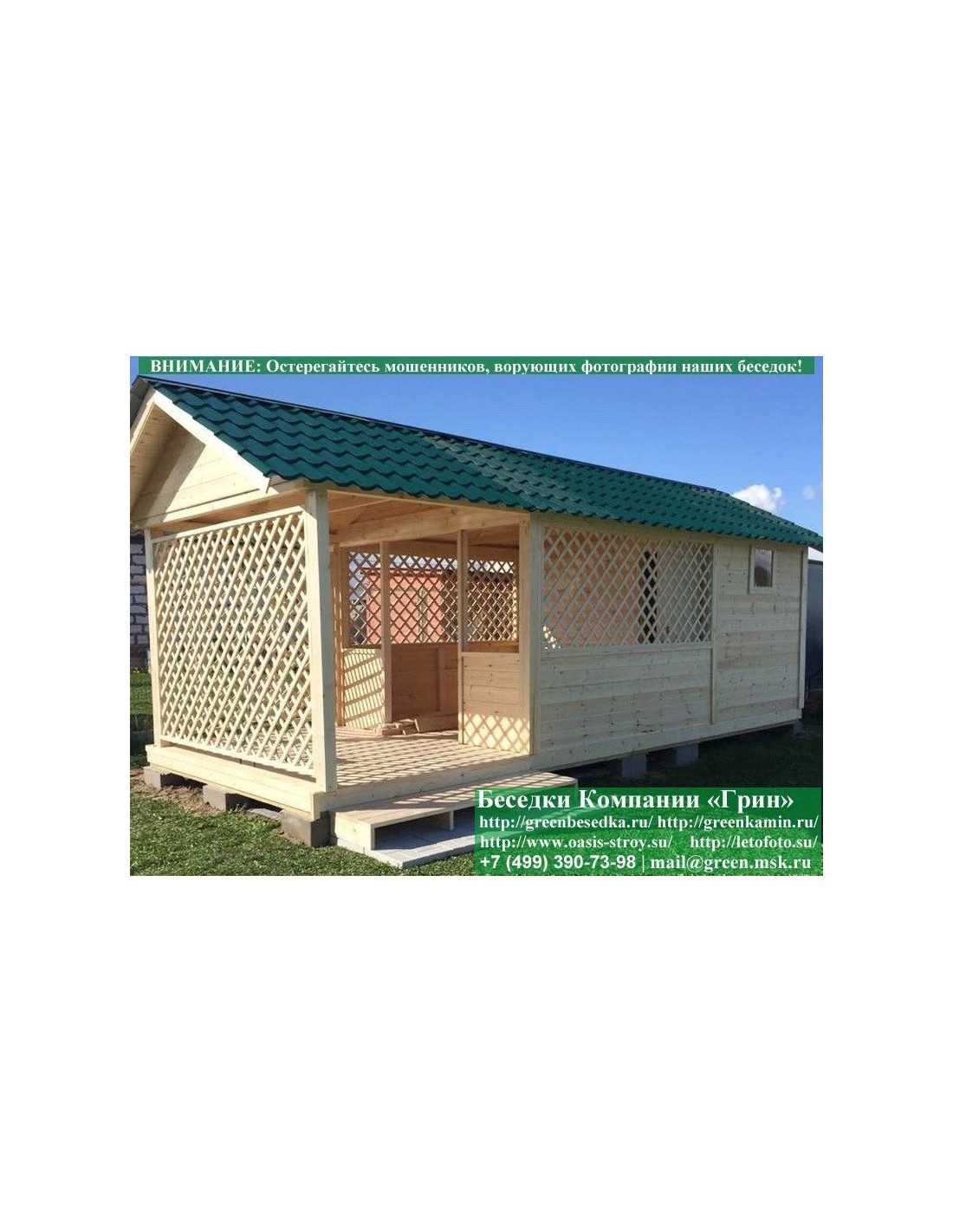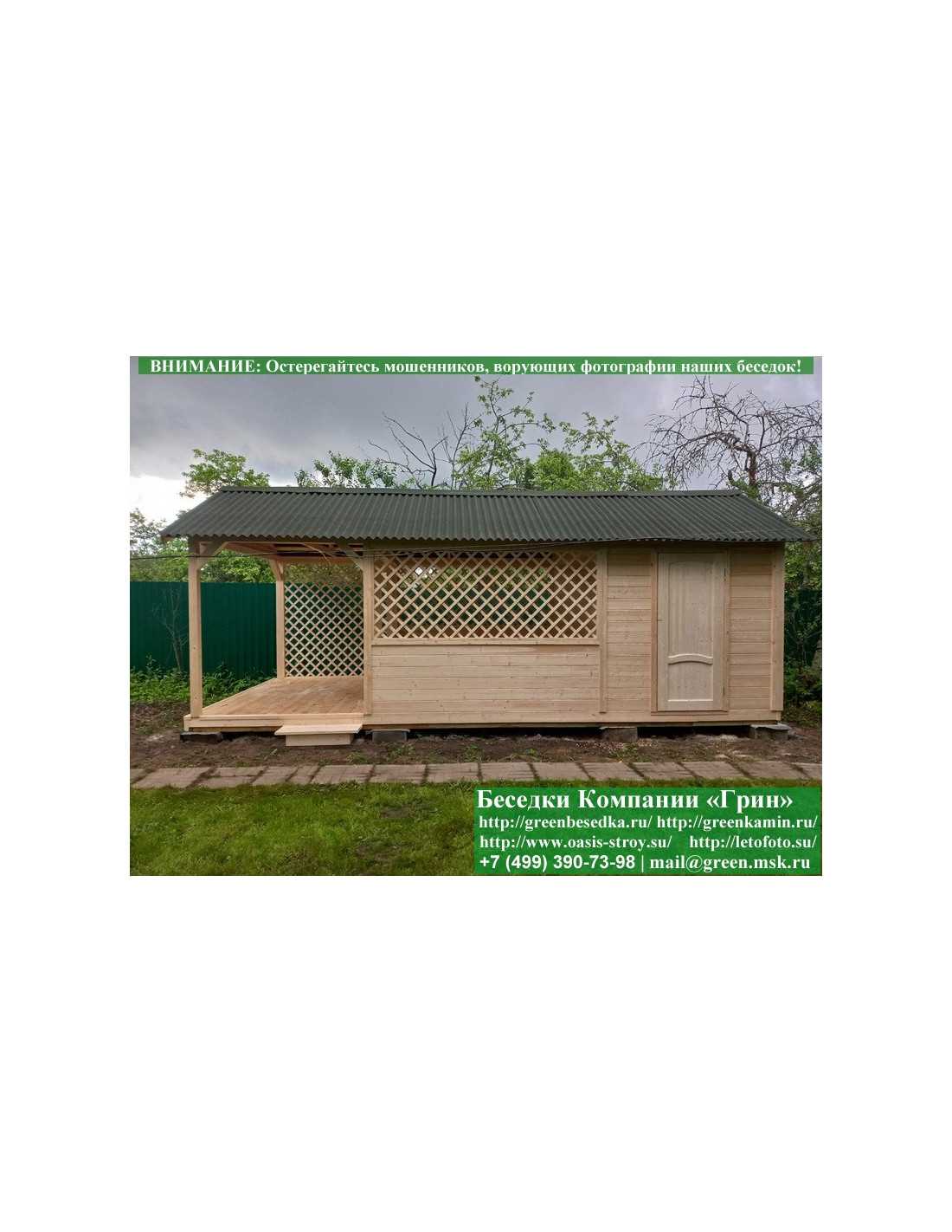 В стандартной поставке в виде кровли на крышу беседок, бытовок, хозблоков 3х7 метров кладется ондулин (мягкий шифер). Вы можете дополнительно заменить его на более надежную металлочерепицу. Цена 30000 руб.