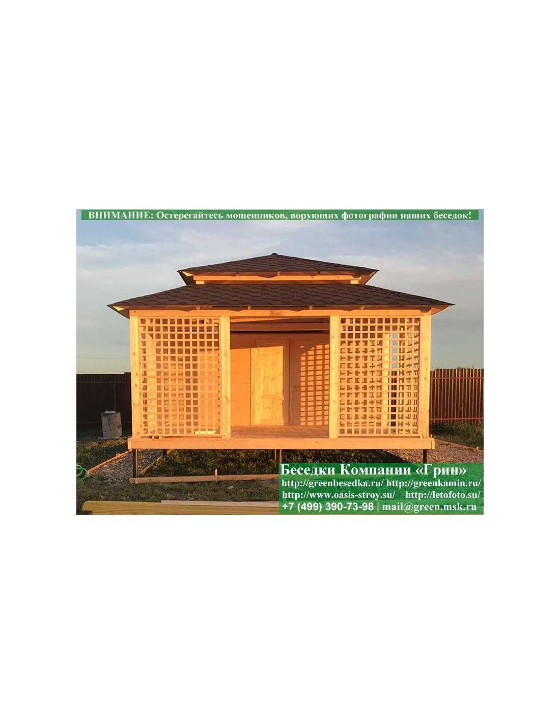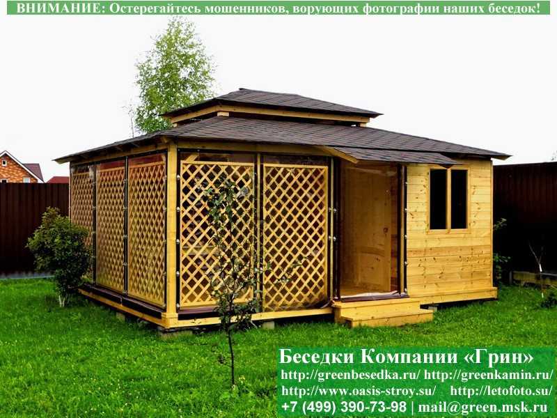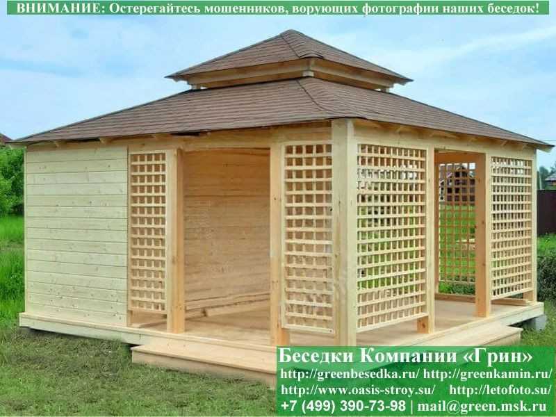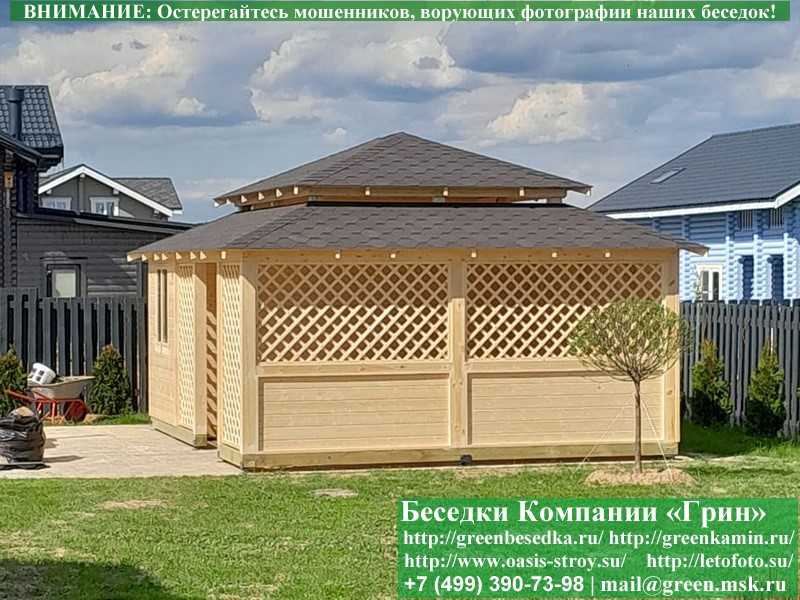 В стандартной поставке беседка идет с проемами под крышей, между беседкой и хозблоком и хозблоком и улицей. Стоимость работ зависит от размеров беседки. Данная цена указана за работу беседки размерами 3х5 метров.