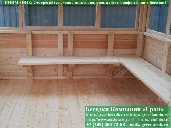 Лавка в 3 доски по 6-и метровой стороне беседки, бытовки, хозблока. Цена: 9000 руб.