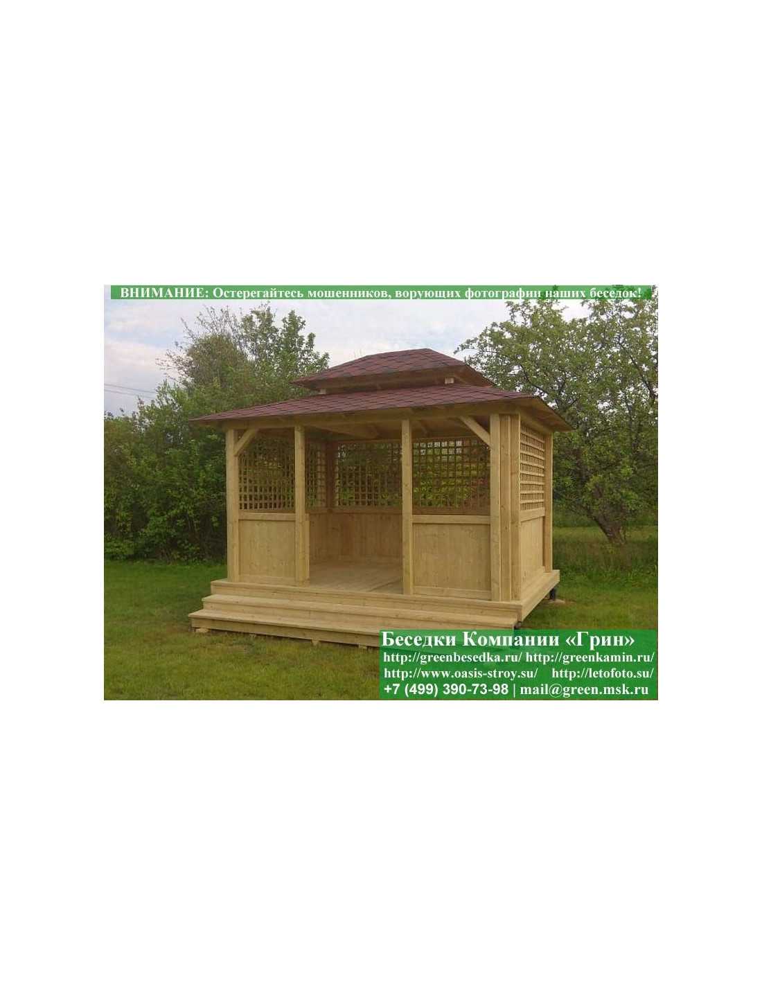 В стандартной поставке в виде кровли на крышу беседок, бытовок, хозблоков 3х3 метра кладется ондулин (мягкий шифер). Вы можете дополнительно заменить его на более надежную металлочерепицу. Цена 8000 руб.