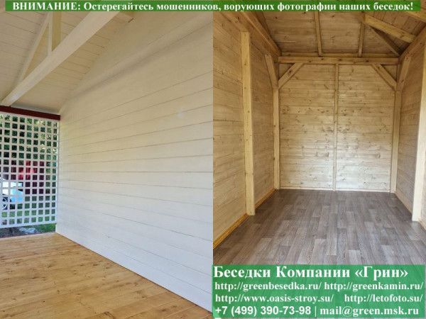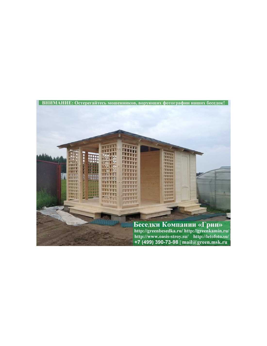 В стандартной поставке беседка идет с проемами под крышей, между беседкой и хозблоком и хозблоком и улицей. Стоимость работ зависит от размеров беседки. Данная цена указана за работу беседки размерами 3х5 метров.