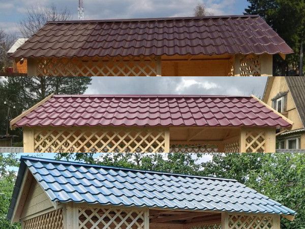 В стандартной поставке в виде кровли на крышу беседок, бытовок, хозблоков 3х5 метров кладется ондулин (мягкий шифер). Вы можете дополнительно заменить его на более надежную металлочерепицу. Цена 10000 руб.