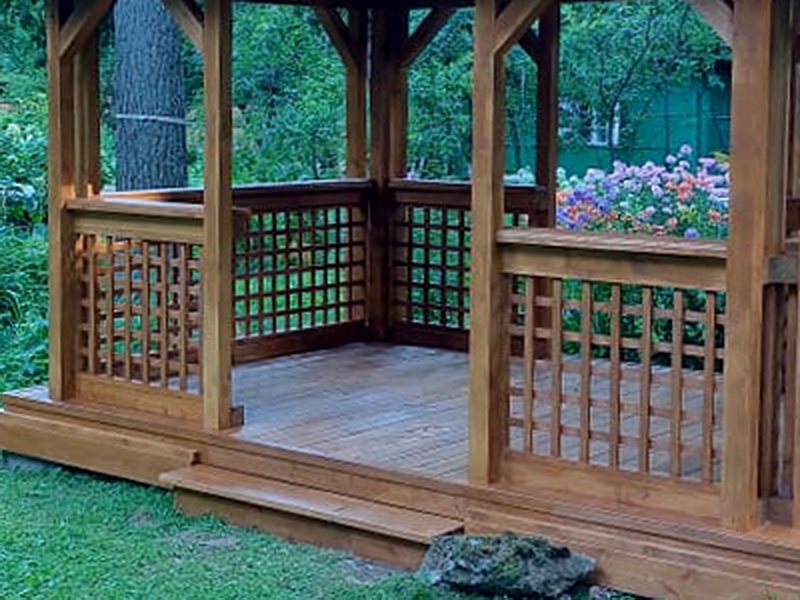 Обратите внимание: даже сухое дерево нужно обязательно обрабатывать. Если не обрабатывать беседку, даже на сухом дереве могут появиться трещины и щели. Не такие огромные, как на влажном дереве, толщиной с палец. Но все равно неприятно. Трещины и щели могут появиться даже на сухом обработанном дереве. Такова природа этого материала. Но появление их на обработанных местах существенно ниже.
