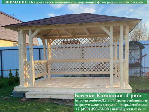 Удобная летняя деревянная беседка для дачи, загородного дома с широким входом 3х4 метра. Фото и цены. В интернет-магазине 'ЛетоФото' вы можете купить практичную летнюю беседку из дерева с широким входом для дачи, сада 3х4 под ключ с монтажом в Туле и Тульской области. Изготовление и строительство красивых деревянных летних беседок по готовым проектам размерами 3х4 метра возможно так же в Москве, Московской, Калужской, Тверской, Владимирской, Ивановской, Ярославской, Брянской, Костромской, Орловской, Рязанской, Новгородской,  и некоторых других областях.