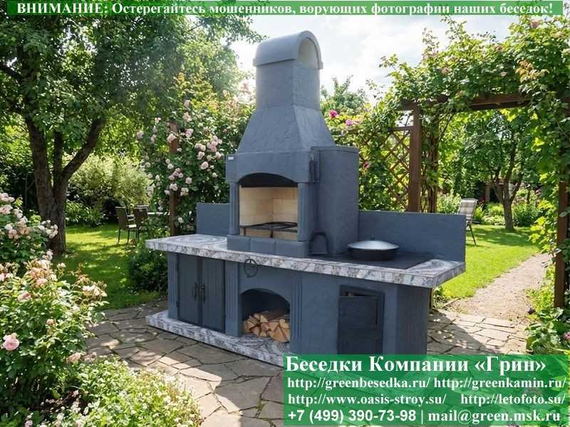 Мы предлагаем купить печь-барбекю для беседки, летней кухни или улицы в очень интересном оформлении. Отделка предполагает использование гранита, мрамора, байрамикса. Это не только красивое, но и функциональное решение, потому что натуральный камень хорошо моется, он устойчив к высокой температуре и холоду, механическому воздействию.
