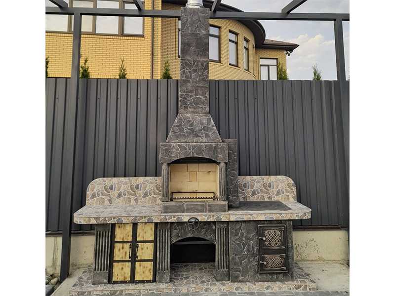 Внутри печь сделана из армированного бетона — это тоже очень надежное решение, которое неоднократно себя зарекомендовало. Мы работаем на рынке более 10 лет, поэтому хорошо понимаем, какой должна быть основа печи-барбекю, чтобы она хорошо справлялась с возложенными на нее задачами, не теряла функциональность и внешний вид долгое время.