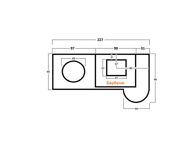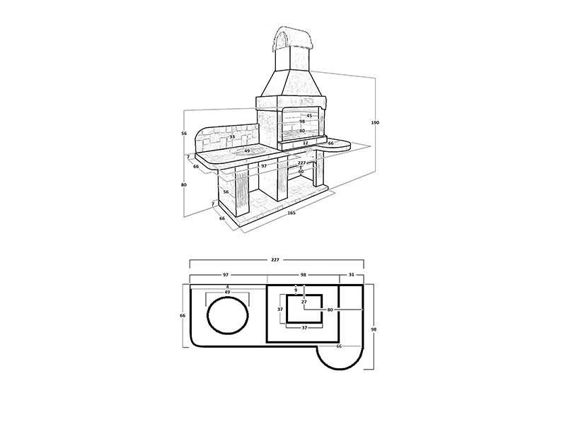 Дополнительно топка оснащена удобной решеткой. Ее конструкция допускает использование шампуров, решетки-гриль, разных емкостей — вроде большой кастрюли или чугунка. Если нужно, комплекс барбекю оснащается подъемным механизмом.