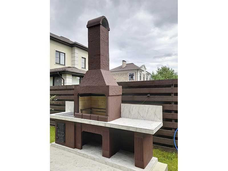 - Комплекс-барбекю с мойкой и плитой № 21 сделана из армированного огнеупорного бетона с добавлением керамзита;