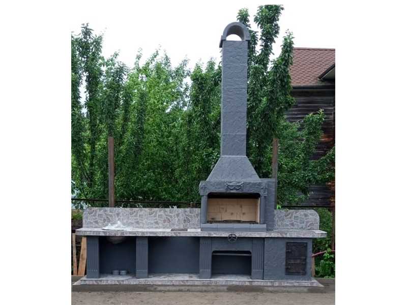 - Простые, но качественные материалы. Для создания каркаса печи-барбекю на дачу мы используем армированный бетон, огнеупорный кирпич. Облицовка конструкции делается с помощью прочной плитки. Для окрашивания выбрана устойчивая порошковая краска.
