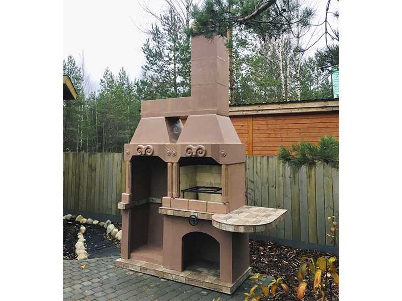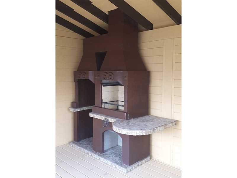 Печь этой модели имеет простой, лаконичный дизайн. Мы выбрали нейтральные цвета: коричневый, серый нескольких оттенков. А это означает, что подолгу искать место для конструкции не придется. Она впишется в любую беседку и на любой участок.