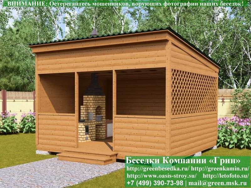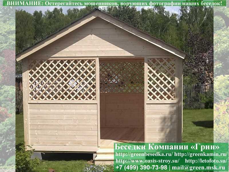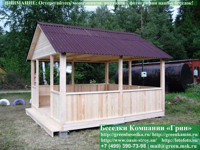 В стандартной поставке в виде кровли на крышу беседок, бытовок, хозблоков 4х4 метра кладется ондулин (мягкий шифер). Вы можете дополнительно заменить его на более надежную металлочерепицу. Цена 19000 руб.