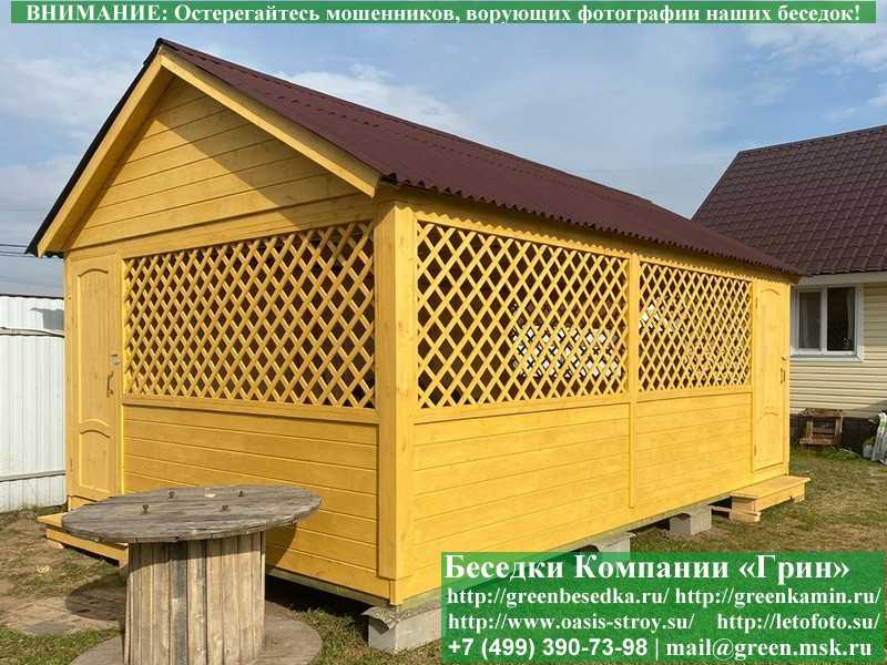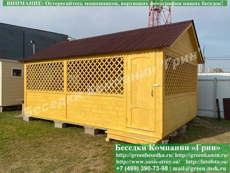 В стандартной поставке основание под кровлю в беседках, бытовка, хозблоках 4х5 метров идет с обрешеткой через 10 см. Вы можете дополнительно заказать глухую имитацию бруса, которая сделает вашу деревянную постройку красивее и эстетичнее. Цена 29000 руб.