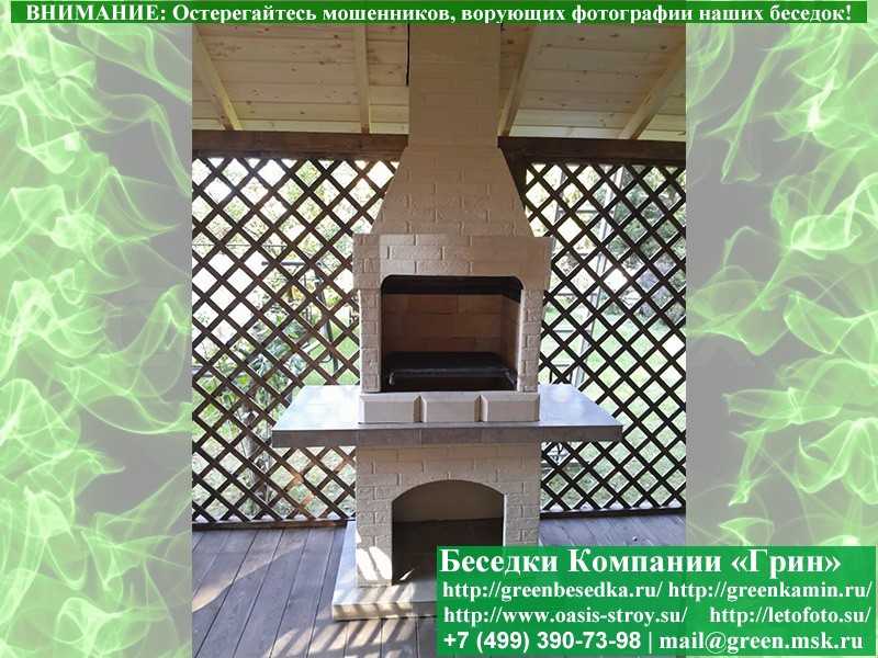Печь-барбекю № 20 сделана из армированного огнеупорного бетона с добавлением керамзита; Внутри топки установлены огнеупорные шамотные кирпичи; Столешница и нижнее основание облицованы керамогранитной плиткой; Внешняя стена покрашена стойкой фасадной краской; Снизу предусмотрено место для дров; Топливо: Дрова и Уголь;Доставка и монтаж готовых,...