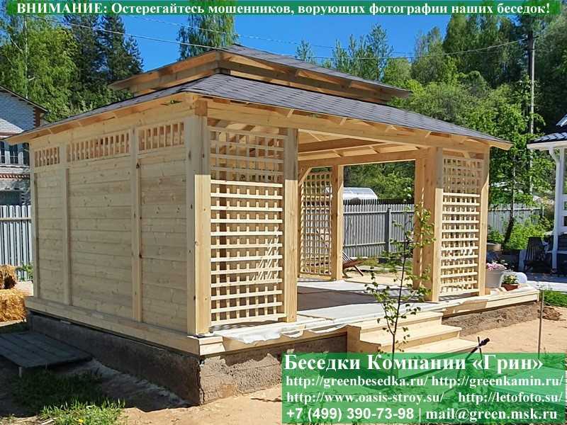 Беседки, бытовки, хозблоки поставляются в не крашеном и не обработанном виде. Рекомендуется сразу же их обработать антисептиком или покрасить;