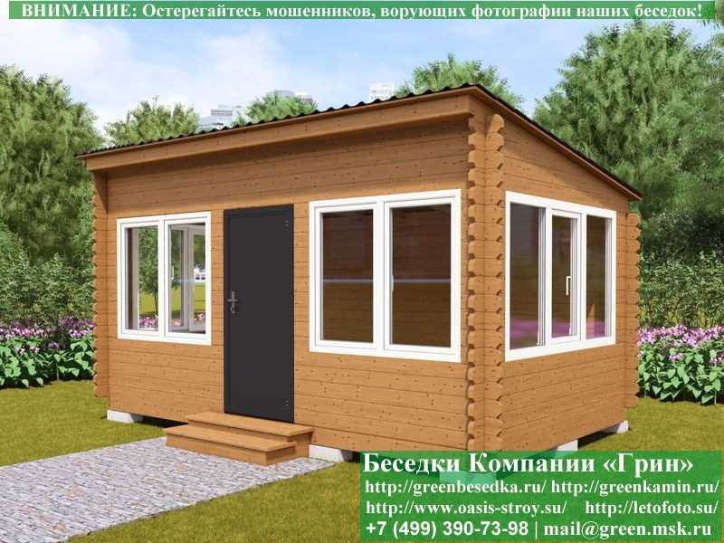 В стандартной поставке в виде кровли на крышу беседок, бытовок, хозблоков 3х5 метров кладется ондулин (мягкий шифер). Вы можете дополнительно заменить его на более надежную металлочерепицу. Цена 10000 руб.