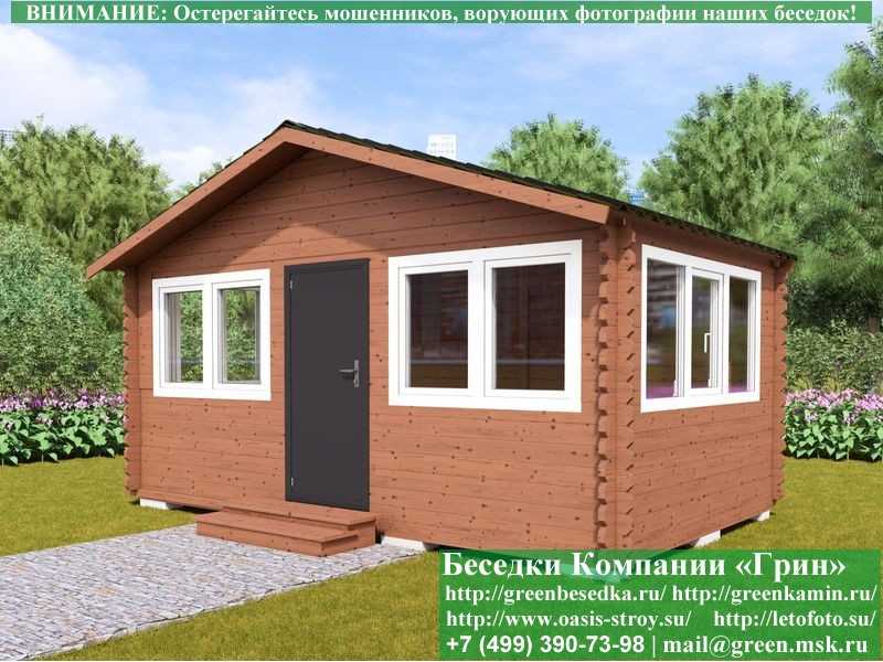 В стандартной поставке основание под кровлю в беседках, бытовка, хозблоках 3х5 метров идет с обрешеткой через 10 см. Вы можете дополнительно заказать глухую имитацию бруса, которая сделает вашу деревянную постройку красивее и эстетичнее. Цена 22000 руб.