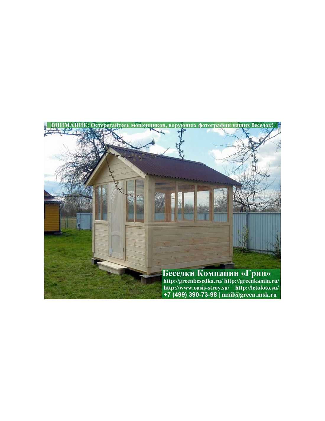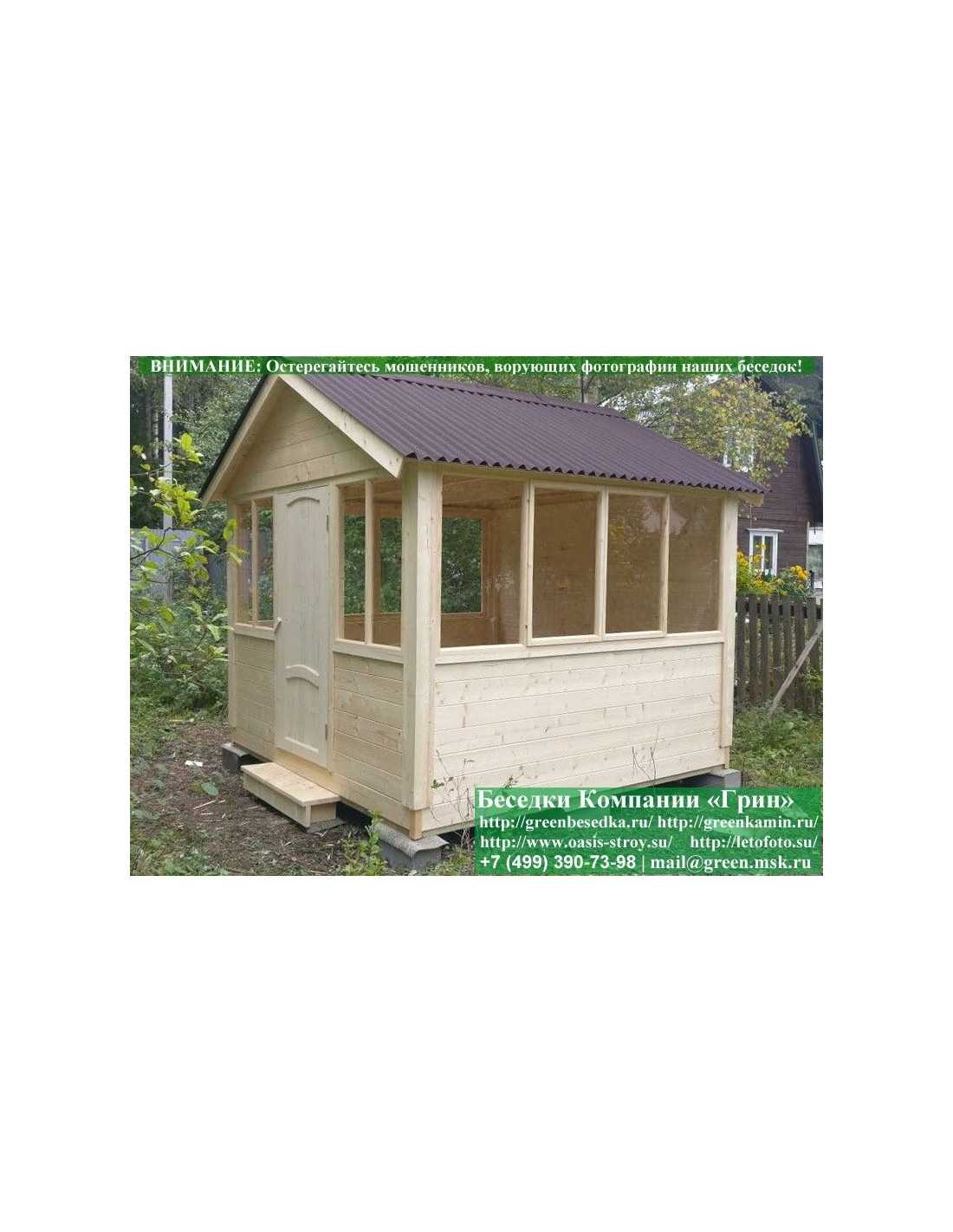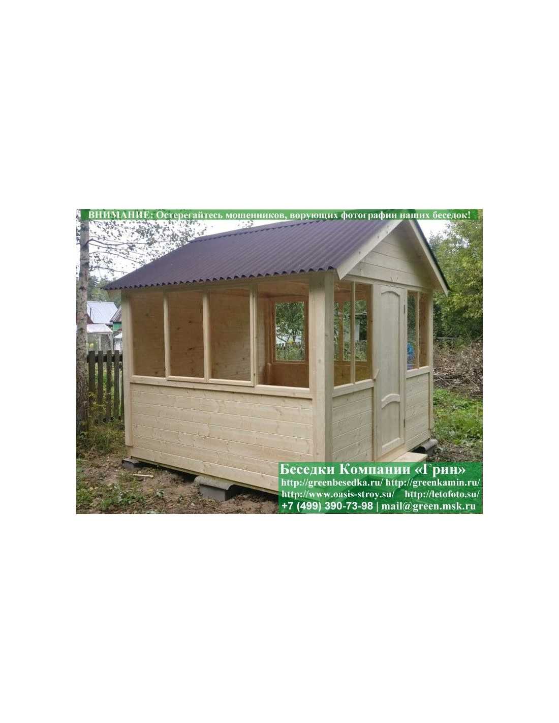 В стандартной поставке в виде кровли на крышу беседок, бытовок, хозблоков 3х3 метра кладется ондулин (мягкий шифер). Вы можете дополнительно заменить его на более надежную металлочерепицу. Цена 8000 руб.