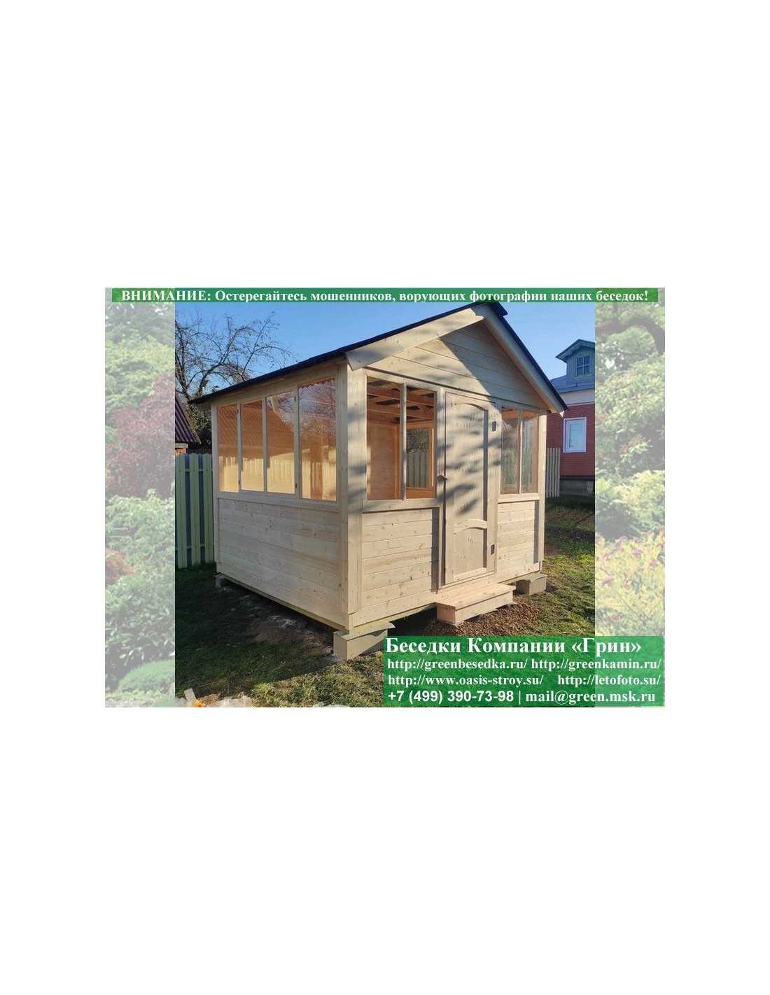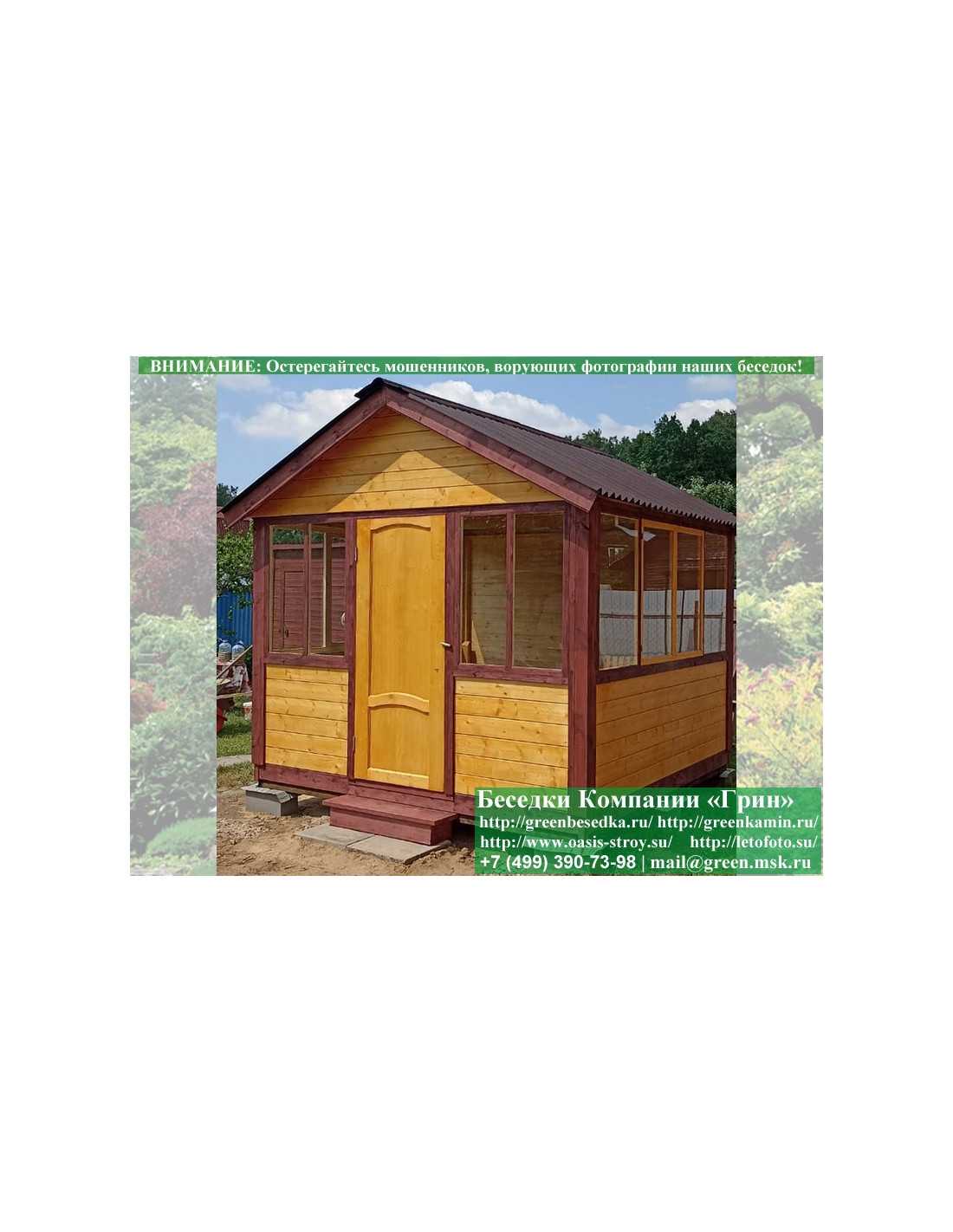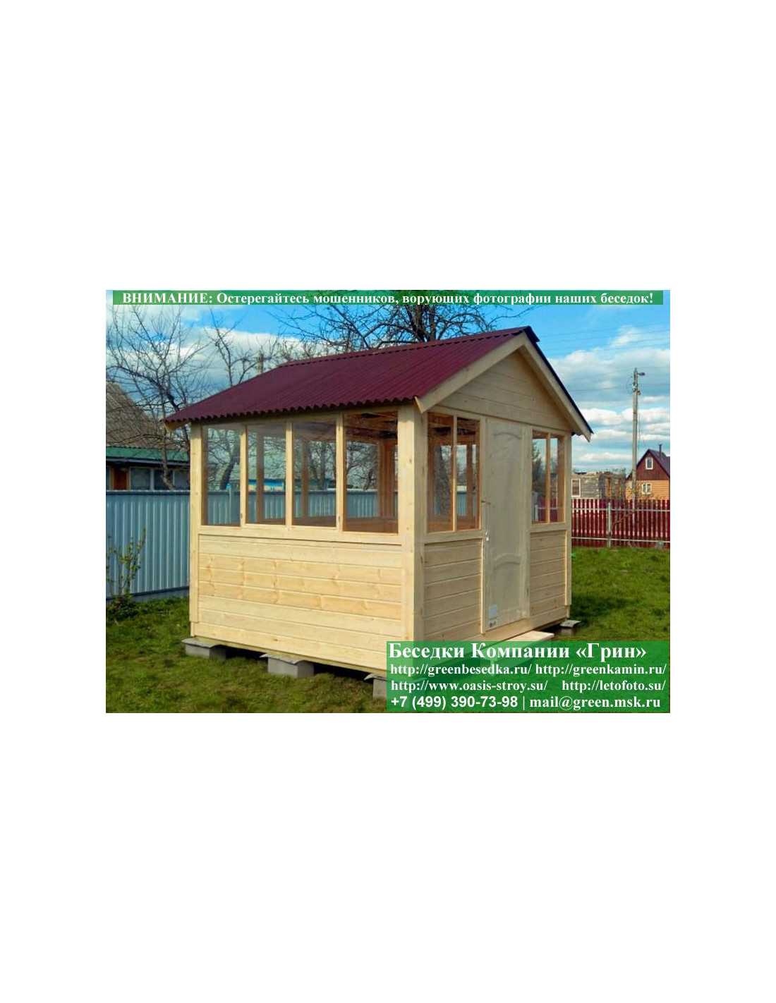 В стандартной поставке в виде кровли на крышу беседок, бытовок, хозблоков 3х3 метра кладется ондулин (мягкий шифер). Вы можете дополнительно заменить его на более надежную металлочерепицу. Цена 8000 руб.
