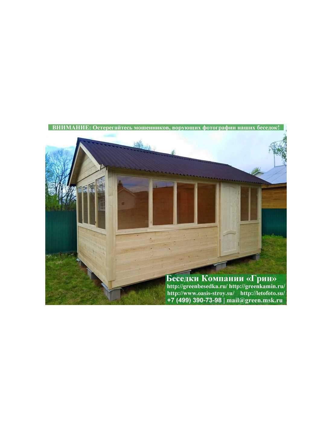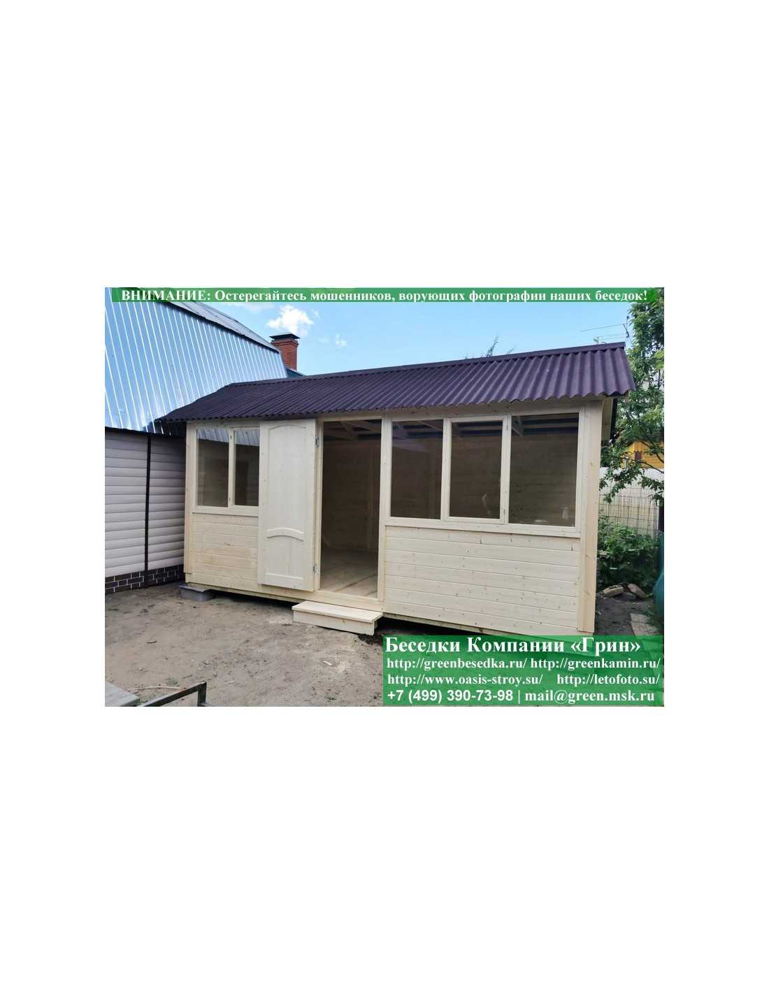 В стандартной поставке в виде кровли на крышу беседок, бытовок, хозблоков 3х5 метров кладется ондулин (мягкий шифер). Вы можете дополнительно заменить его на более надежную металлочерепицу. Цена 10000 руб.