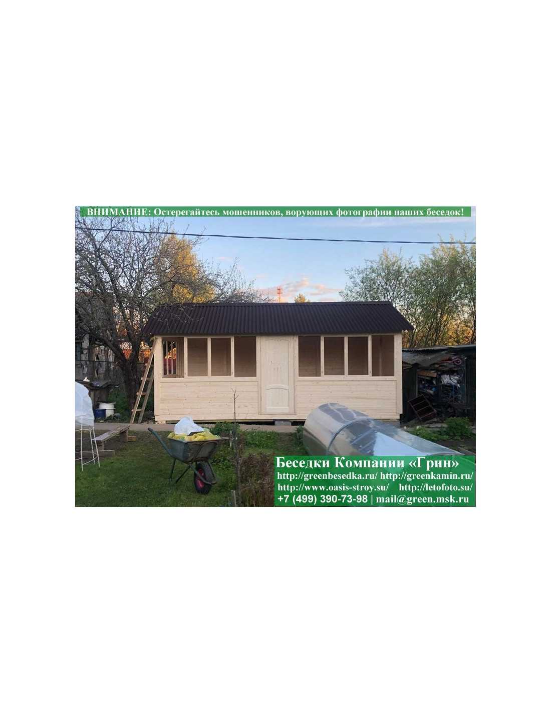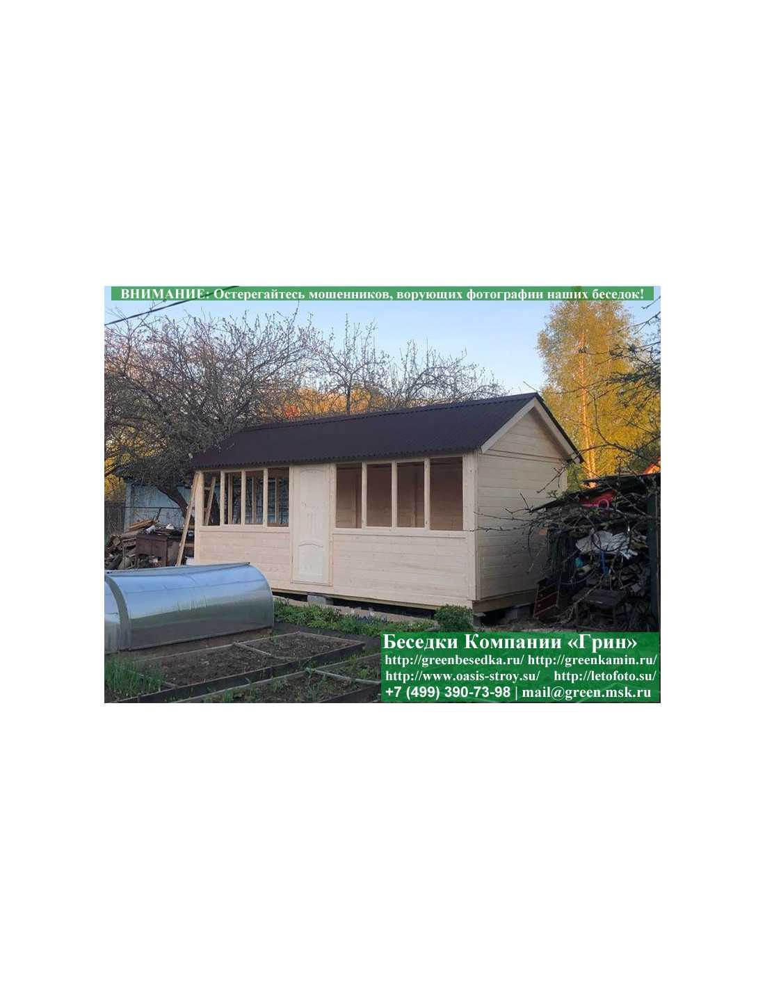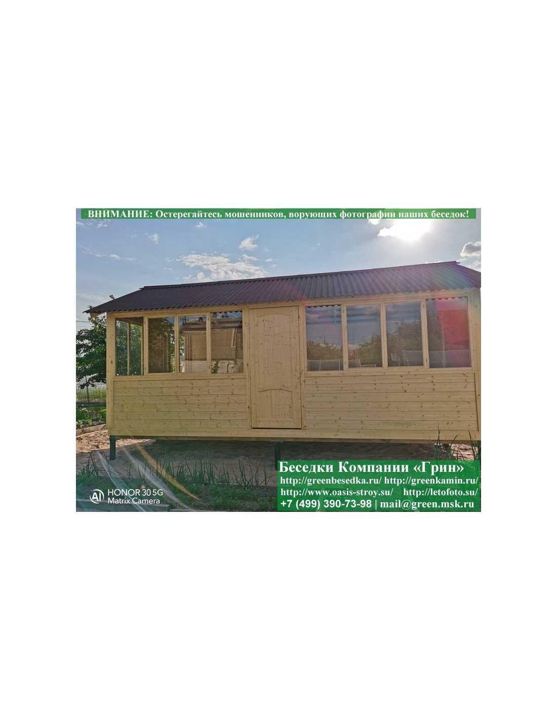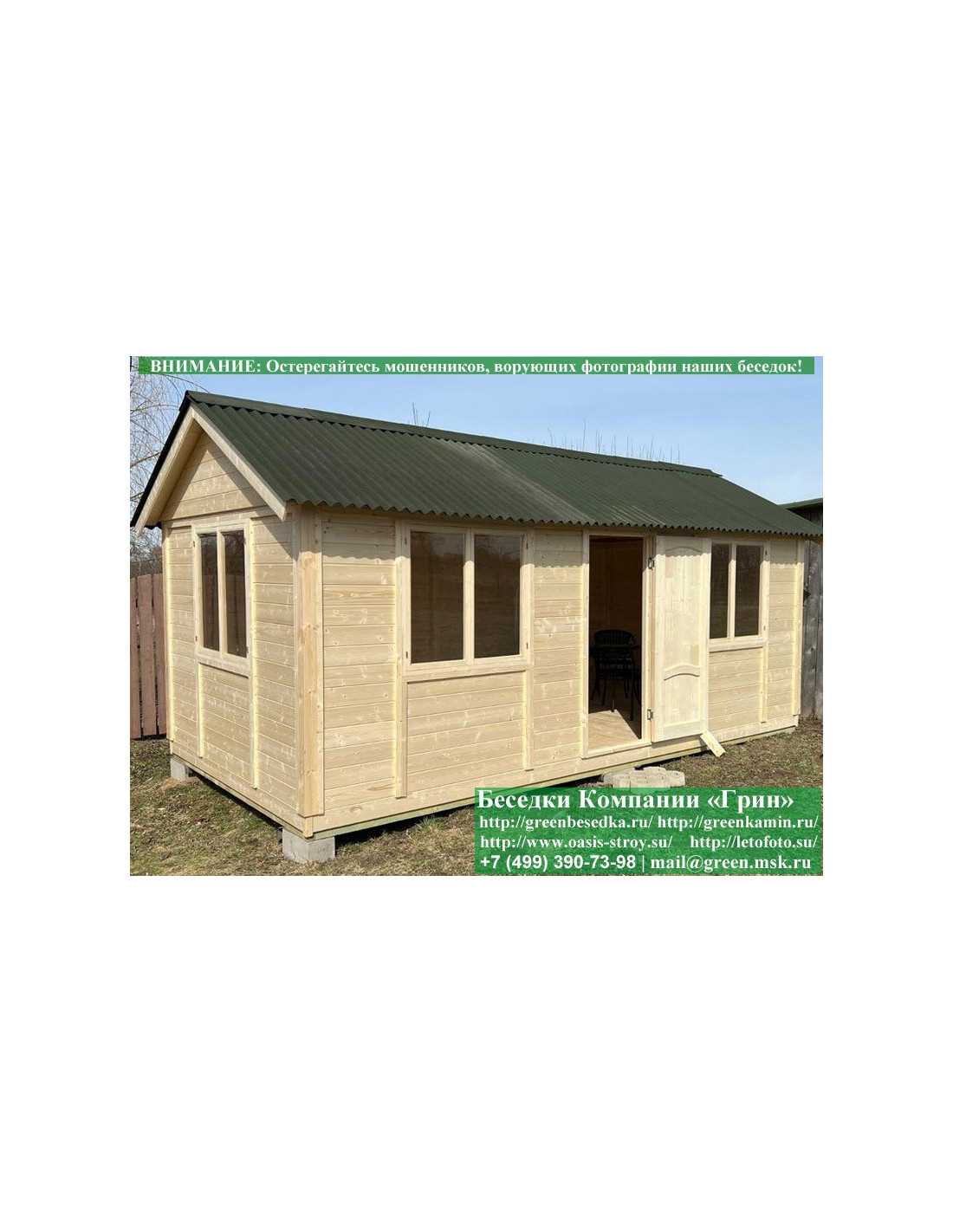 В стандартной поставке в виде кровли на крышу беседок, бытовок, хозблоков 3х6 метров кладется ондулин (мягкий шифер). Вы можете дополнительно заменить его на более надежную металлочерепицу. Цена 26500 руб.
