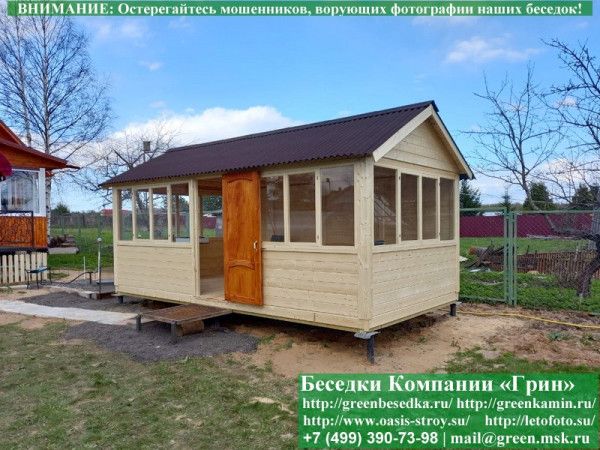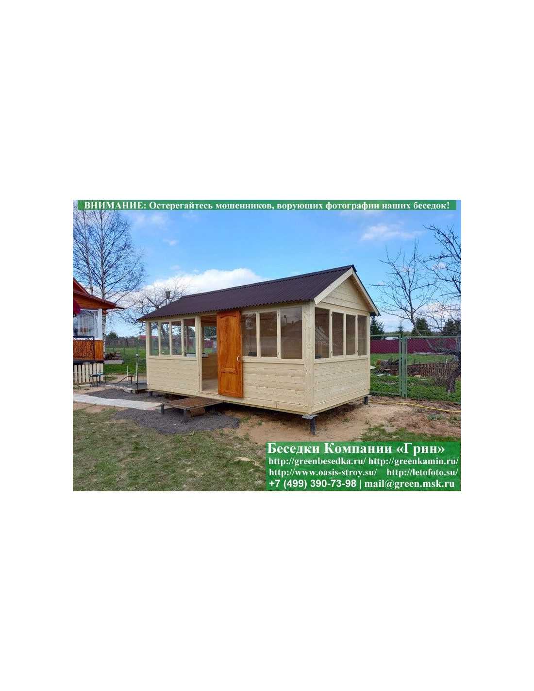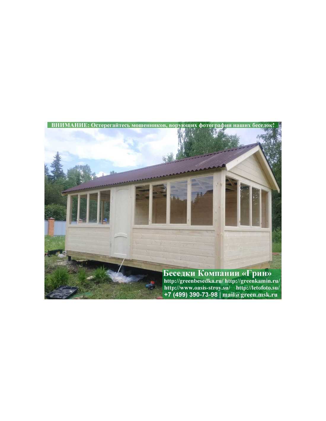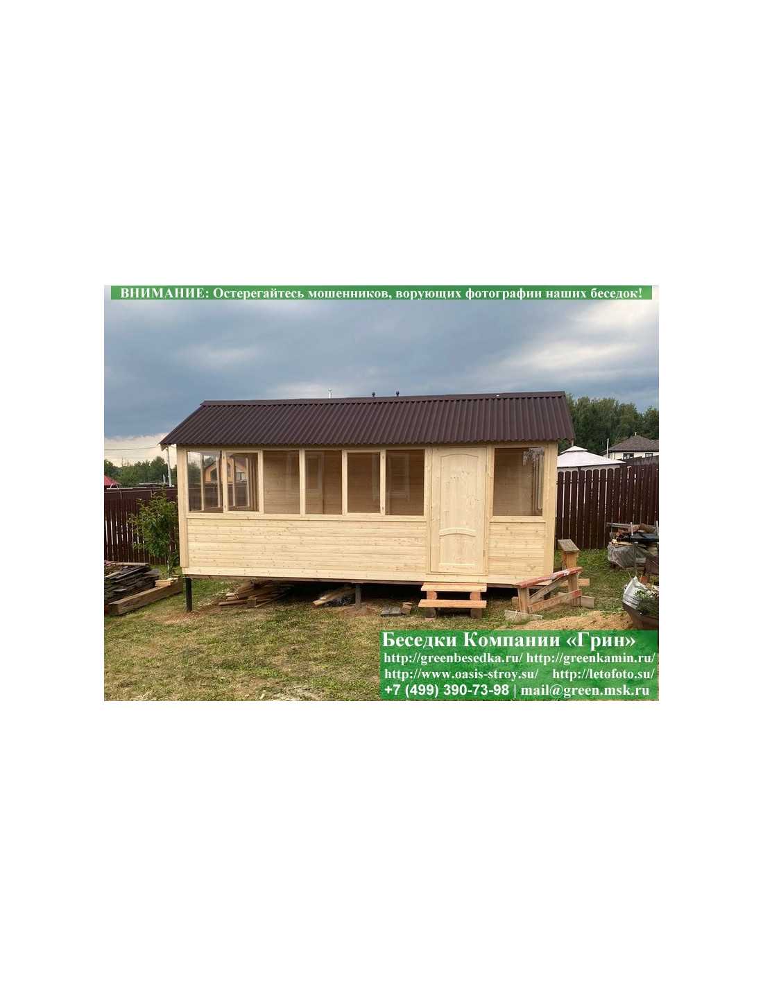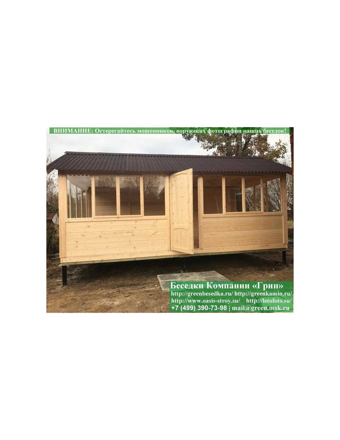 В стандартной поставке в виде кровли на крышу беседок, бытовок, хозблоков 3х6 метров кладется ондулин (мягкий шифер). Вы можете дополнительно заменить его на более надежную металлочерепицу. Цена 26500 руб.