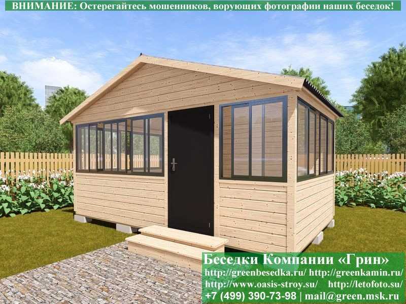 В стандартной поставке в виде кровли на крышу беседок, бытовок, хозблоков 3х5 метров кладется ондулин (мягкий шифер). Вы можете дополнительно заменить его на более надежную металлочерепицу. Цена 10000 руб.