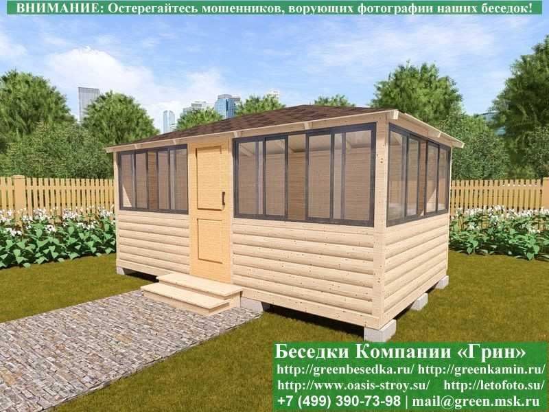 В стандартной поставке основание под кровлю в беседках, бытовка, хозблоках 3х5 метров идет с обрешеткой через 10 см. Вы можете дополнительно заказать глухую имитацию бруса, которая сделает вашу деревянную постройку красивее и эстетичнее. Цена 22000 руб.