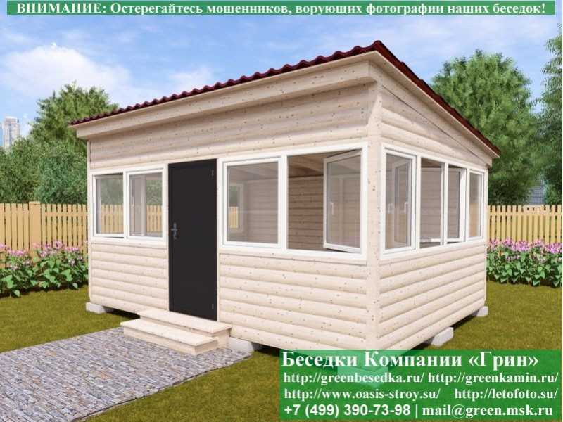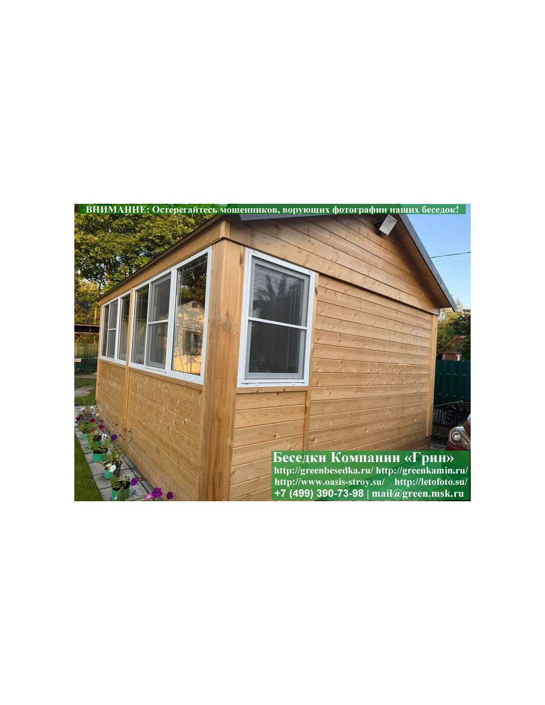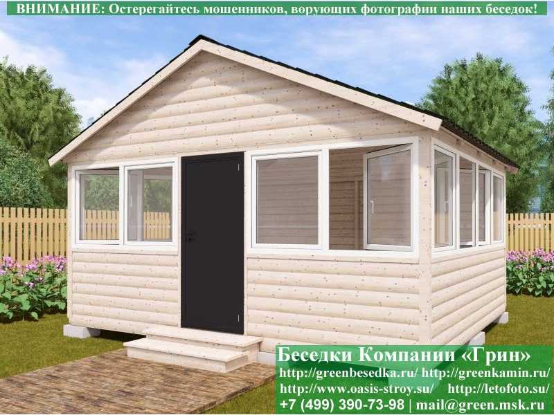 В стандартной поставке основание под кровлю в беседках, бытовка, хозблоках 4х5 метров идет с обрешеткой через 10 см. Вы можете дополнительно заказать глухую имитацию бруса, которая сделает вашу деревянную постройку красивее и эстетичнее. Цена 29000 руб.